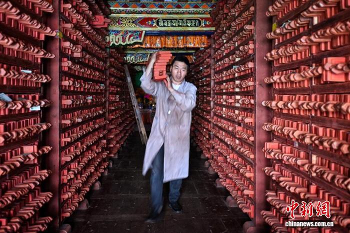 為守護這些珍貴印版,印經(jīng)院的日常維護工作從不松懈。每年工作人員都會對20余萬塊院藏古舊印版進行洗版、晾曬、供油等維護。遇到字體模糊、磨損的印版,70歲的國家級非物質(zhì)文化遺產(chǎn)代表性項目傳承人彭措澤仁便會帶領(lǐng)工匠們仔細(xì)校對,發(fā)現(xiàn)磨損、錯誤后,便用刻刀小心剜下磨損、錯誤部分,重新刻上正確字符鑲嵌上去。在他們的努力下,印經(jīng)院的印版雖歷經(jīng)歲月,卻依然能正常使用,持續(xù)發(fā)揮著文化傳承的作用。