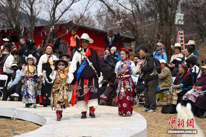 本次秀場(chǎng)最動(dòng)人的亮點(diǎn),是平凡家庭的溫情亮相。來(lái)自附近村落的四世同堂家庭一同登臺(tái),年過(guò)八旬的老人身著親手縫制的傳統(tǒng)藏袍,步履從容;年幼的孩童則在杏花樹下蹦跳嬉戲,天真爛漫。三代人、四代人跨越歲月的同臺(tái),讓時(shí)尚走出疏離的舞臺(tái),成為流淌在日常煙火中的文化傳承與親情陪伴,引得現(xiàn)場(chǎng)觀眾紛紛用手機(jī)記錄下這一樸素動(dòng)人的瞬間。
