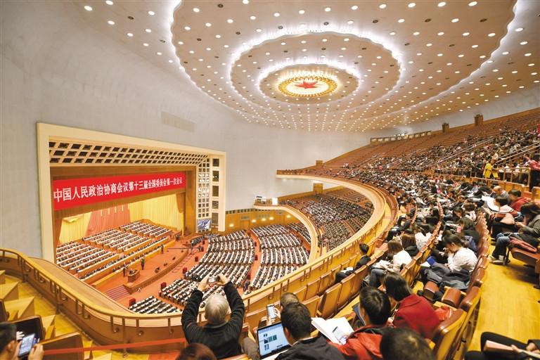 3月3日,全國政協(xié)十三屆一次會議在北京人民大會堂開幕。圖為大會現場。記者 旦增西旦 攝