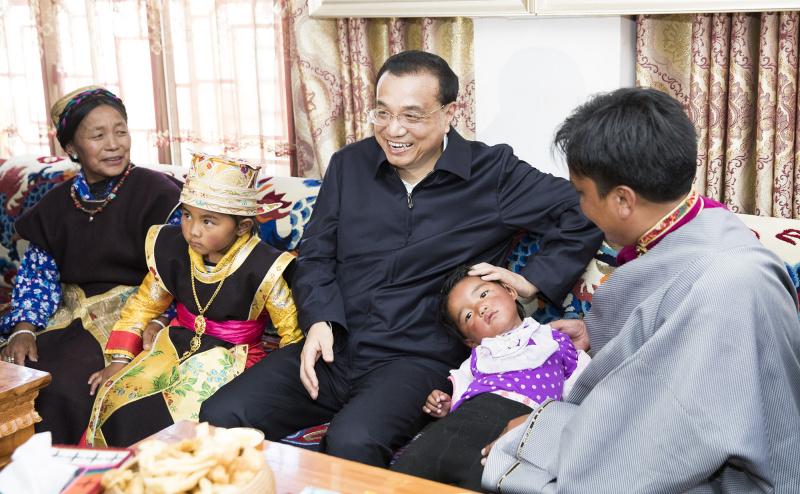李克強(qiáng)總理7月25日到西藏自治區(qū)考察。首先來到林芝,一下飛機(jī)直奔米林縣羌納鄉(xiāng)西嘎門巴村。這是一個移民村,村民由貧困地區(qū)搬遷而來。李克強(qiáng)走進(jìn)村民貢桑家中,和他們一家6口坐在沙發(fā)上拉起家常??偫碓敿?xì)詢問,家里主要收入來源是什么?一年掙多少?看病和孩子上學(xué)方便嗎?現(xiàn)在還有什么困難?貢桑說,他家從交通不便的墨脫縣搬遷到這里,如今靠務(wù)農(nóng)、土地流轉(zhuǎn)、旅游接待等,全家年收入達(dá)15萬元,醫(yī)療和教育都有保障。全村共有72戶,九成都達(dá)到他家這樣的收入水平。李克強(qiáng)說,看到你們通過易地搬遷在高海拔地區(qū)也脫了貧,過上小康生活,我很高興。祝你們生活更加富裕幸福,扎西德勒!
