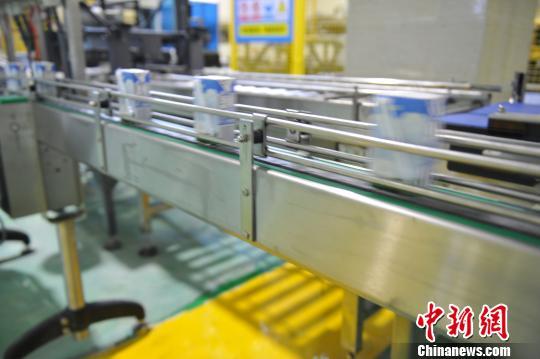 圖為9月7日西藏首個(gè)自主乳制品品牌投產(chǎn)的包裝車(chē)間內(nèi)產(chǎn)品流水線(xiàn)。 張偉 攝