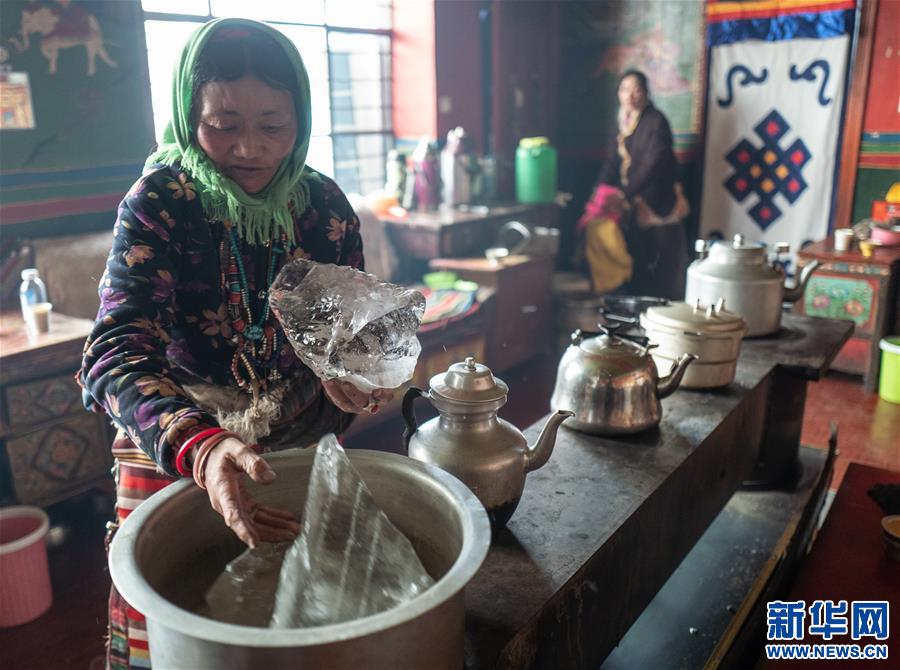 雙湖縣嘎措鄉(xiāng)牧民在化冰燒水(1月31日攝)。 新華社記者 普布扎西 攝