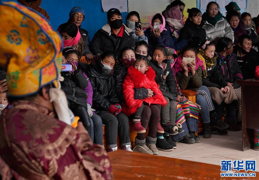 雙湖縣嘎措鄉(xiāng)的牧民在觀看節(jié)日期間文藝下鄉(xiāng)活動(dòng)的表演(1月31日攝)。 新華社記者 普布扎西 攝