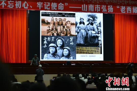 “這張照片拍的是十八軍進(jìn)藏女兵在修筑川藏公路時的合影,她們手掌向前,相互比較誰手上磨出來的繭子更多……”9月17日,原中國人民解放軍第十八軍宣傳部部長夏川之子蘆繼兵,在西藏山南市向當(dāng)?shù)攸h員干部及民眾講述十八軍進(jìn)藏故事,弘揚(yáng)“老西藏精神”。