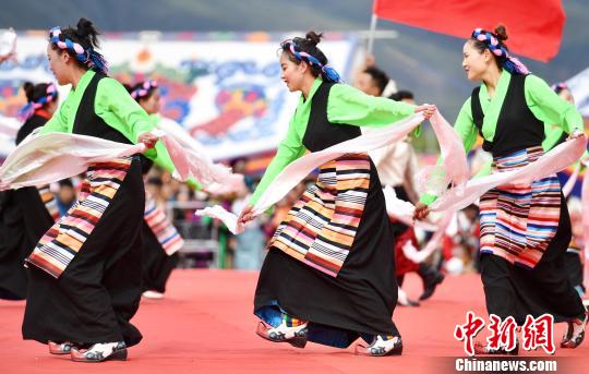 西藏拉薩墨竹工卡縣慶祝新中國成立70周年文藝演出活動23日在當(dāng)?shù)嘏e行。