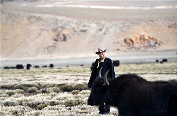 2019年5月23日,吳雨初在藏北考察牦牛。
