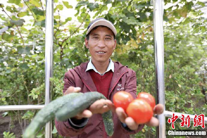 巴珠在察看蔬菜的長(zhǎng)勢(shì)。旦增努布 攝