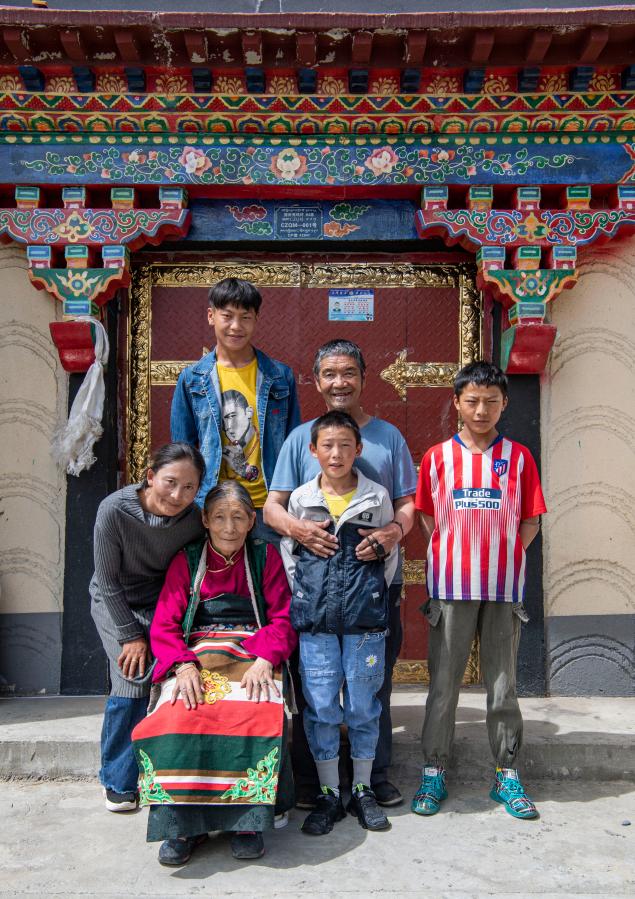 來自雙湖縣措折強瑪鄉(xiāng)71歲的羅達瓦(后右二)和家人在位于山南市貢嘎縣森布日搬遷安置點的新家門前合影(2020年8月24日攝)。森布日搬遷安置點是西藏極高海拔地區(qū)居民生態(tài)搬遷安置點之一,2019年底,來自那曲市安多縣色務鄉(xiāng),雙湖縣嘎措鄉(xiāng)、雅曲鄉(xiāng)、措折強瑪鄉(xiāng)的共計957戶、4058名群眾搬遷至此。新華社記者 孫非 攝