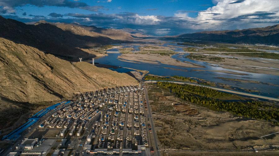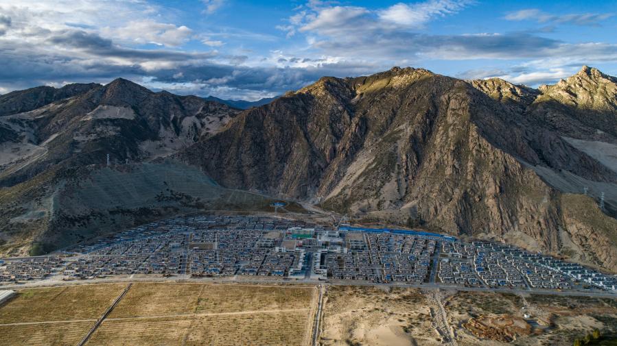 位于山南市貢嘎縣的森布日搬遷安置點(2020年9月24日攝,無人機照片)。新華社記者 孫非 攝