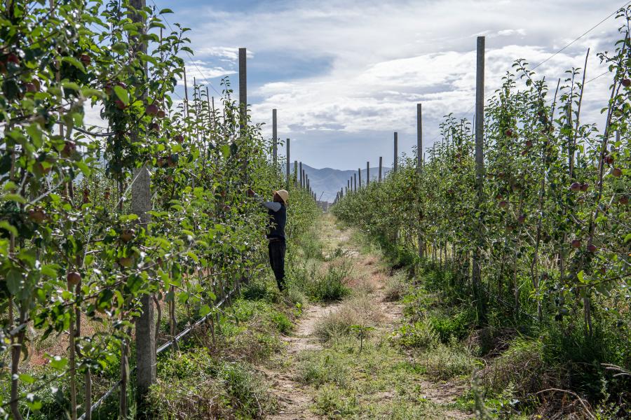 山南市貢嘎縣森布日搬遷安置點千畝矮化蘋果種植園(2020年8月24日攝)。這是山南市森布日極高海拔生態(tài)搬遷點經濟林種植基地建設項目的一部分,果園收入的65%將作為分紅交給搬遷群眾。新華社記者 孫非 攝
