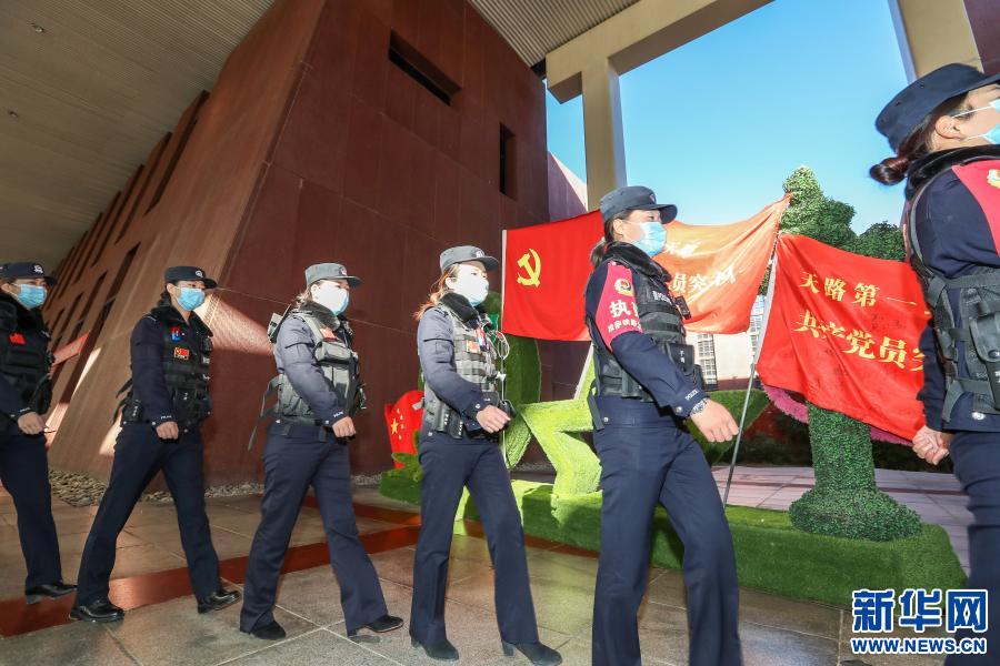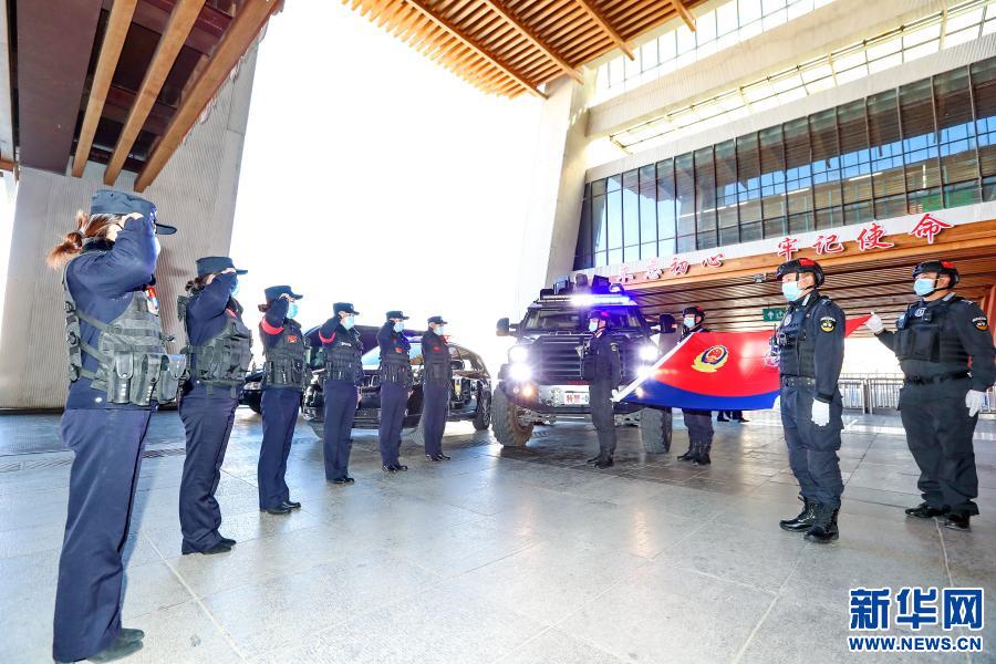 1月10日,中國人民警察節(jié)當日,拉薩火車站派出所“女子格?;ā本M在巡邏。新華社發(fā)(胡安鵬、黃飛攝影報道)