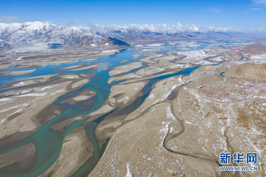 這是2020年3月24日拍攝的雅魯藏布江雪景(無人機照片)。新華社記者 普布扎西 攝