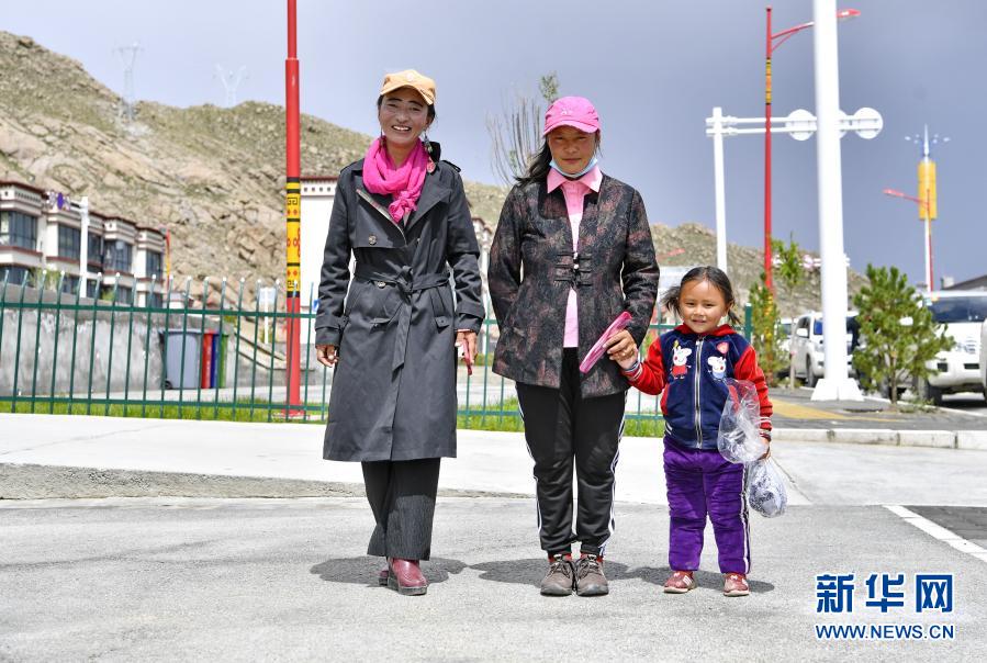 從雙湖縣搬遷而來的牧民行走在山南市貢嘎縣森布日村街頭(2020年7月29日攝)。新華社記者 張汝鋒 攝