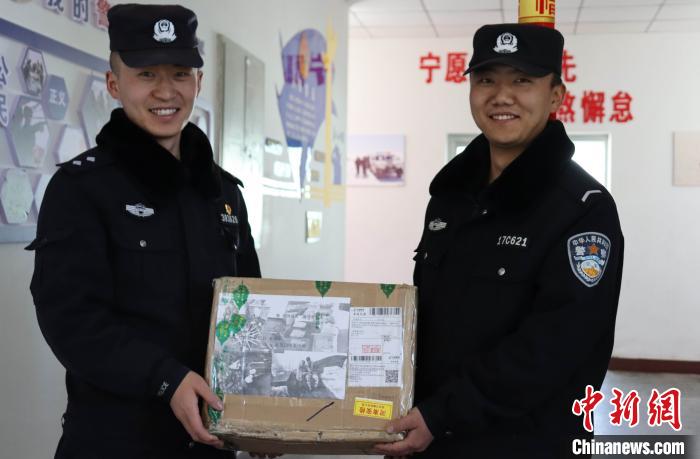 圖為民警們拿到包裹時(shí)格外開(kāi)心。劉志武 攝