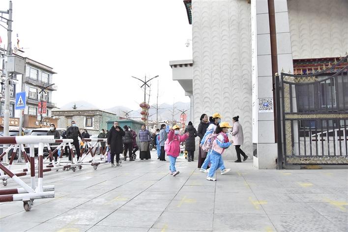 3月2日早上8時許,拉薩市第一小學門口熱鬧非凡。孩子們在家長的護送下背著書包、系著紅領巾,經過體溫測量、消毒等疫情防控工作后,興奮地邁入校門。進入校園后,爭著跟每一位老師問好,迫不及待地和許久不見的同學分享愉快的假期生活。“開學了,我又能和同學們一起上課、玩耍,還能見到喜歡的老師,心里特別高興?!弊楷斃放d奮地說,“假期我們全家都去成都游玩了,我給班里的小伙伴們都帶了禮物,希望他們會喜歡?!?/p>