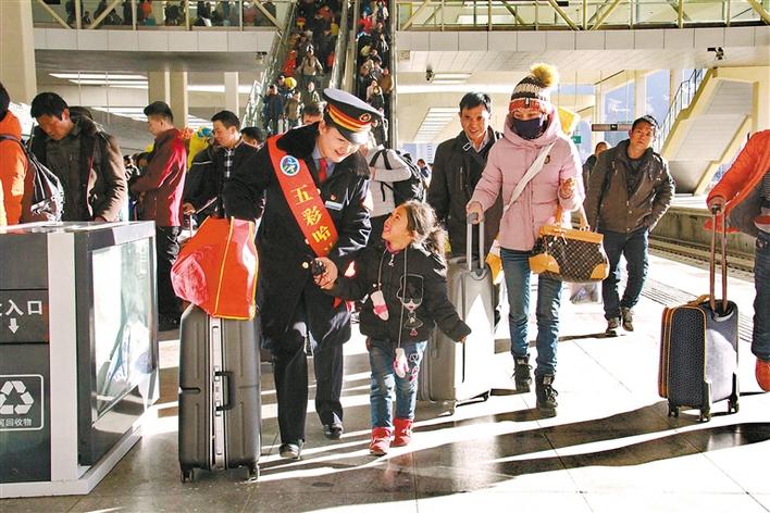 圖為拉薩火車站售票大廳的工作人員向旅客售票