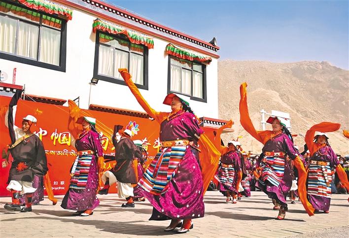 圖為森布日極高海拔搬遷群眾慶祝“三八”婦女節(jié)