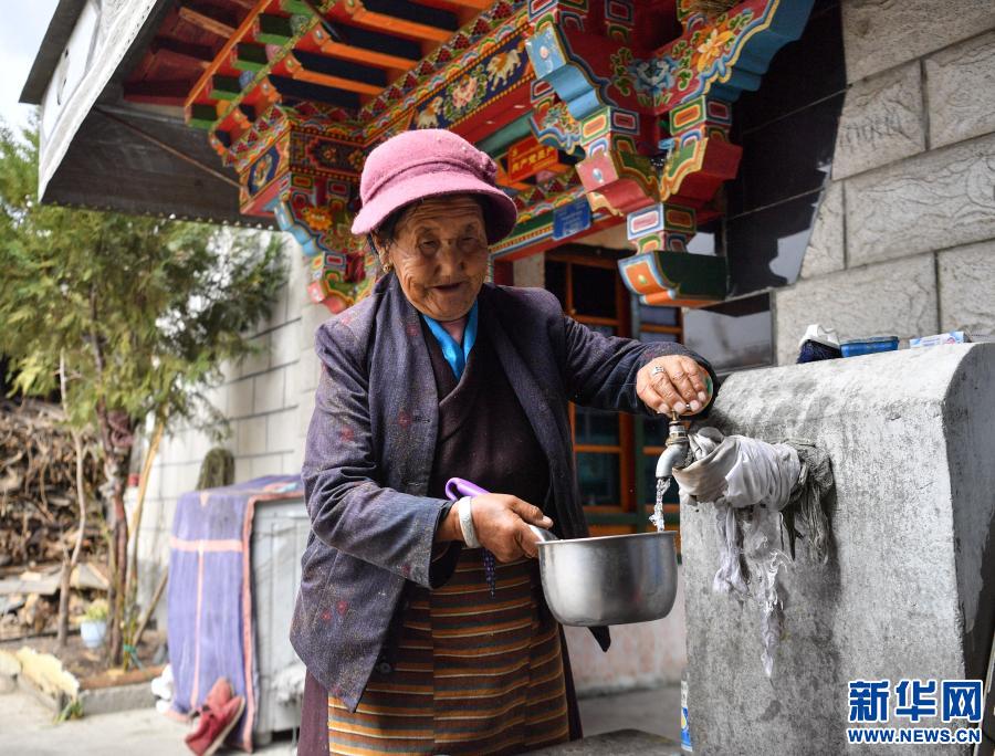 達(dá)娃在自己家中接自來水(3月15日攝)。新華社記者 晉美多吉 攝