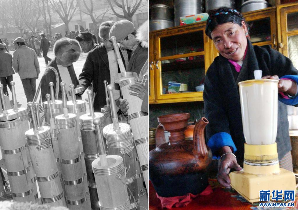 如今,只需輕輕一按開關(guān),電動酥油攪拌機(jī)就能制作出醇香可口的酥油茶。