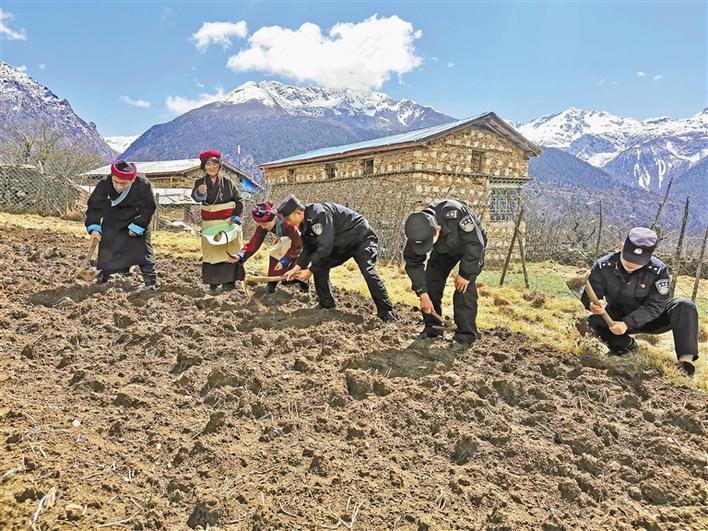 正值春耕時節(jié),山南市錯那縣吉布鄉(xiāng)到處一派熱火朝天的農忙景象。為確保轄區(qū)春耕生產順利進行,山南邊境管理支隊吉布邊境派出所移民管理警察走進田間地頭,幫助缺少勞動力的農戶春耕。