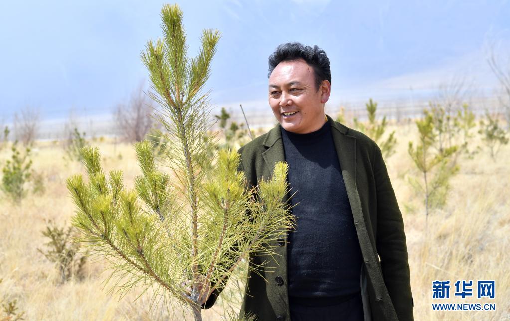 3月30日拍攝的索朗羅布種的樹。新華社記者 覺果 攝