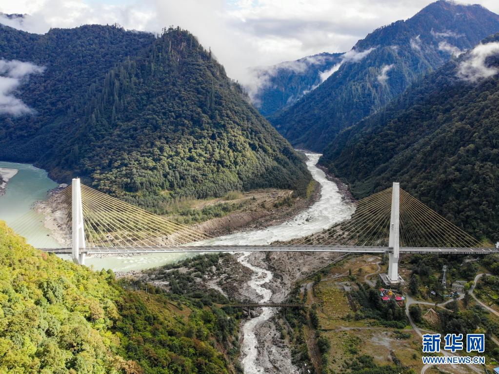 這是川藏公路通麥路段上的迫龍溝特大橋(2019年10月27日攝,無人機(jī)照片)。新華社記者 孫非 攝