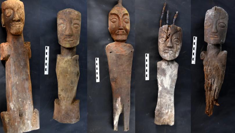桑達(dá)隆果墓地還出土了5件木俑,形態(tài)各異,有的胸部刻有鷹鳥(niǎo)的形狀。拙樸的雕刻手法,與新疆吐魯番發(fā)現(xiàn)的木俑有相似之處。