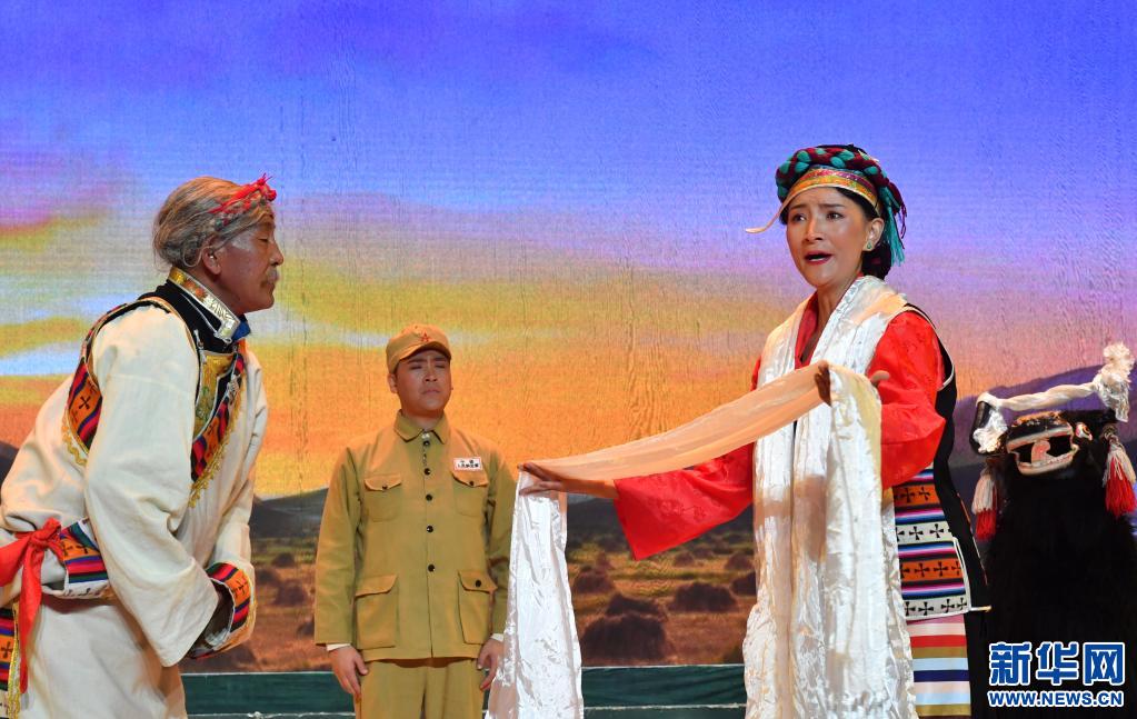 5月19日,演員在新編藏戲《次仁拉姆》中表演。新華社記者 覺果 攝