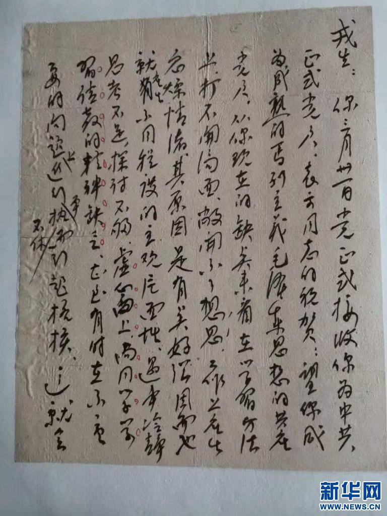 “戎生……我一生,只知為黨為人民,不知為私,你媽媽也是一樣。生出你們兄弟妹以來,均寄托出去了,不能照顧你們周到,現(xiàn)在你們均長(zhǎng)成人了,也很努力求進(jìn)步,這就很好,對(duì)我在邊疆工作也是很大的鼓勵(lì)之一。”