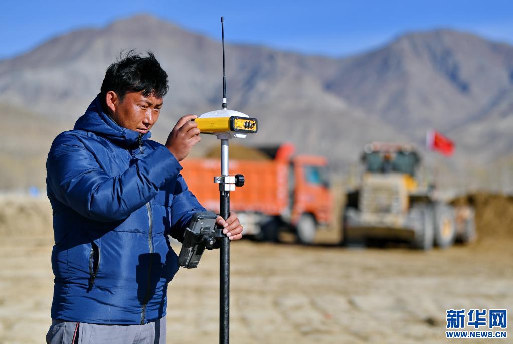 日喀則市桑珠孜區(qū)那塘村,測(cè)繪人員在高標(biāo)準(zhǔn)農(nóng)田項(xiàng)目施工現(xiàn)場(chǎng)進(jìn)行測(cè)量(2020年3月1日) 新華社記者張汝鋒 攝
