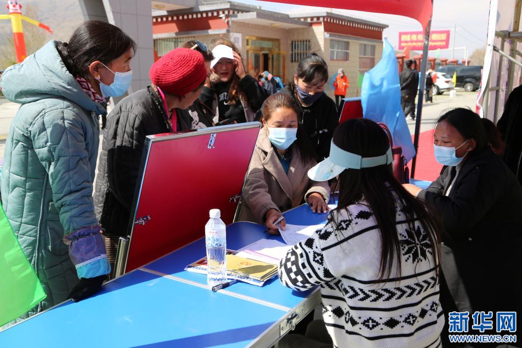 西藏農(nóng)牧民在瓊結(jié)縣產(chǎn)業(yè)園參加“春風(fēng)行動(dòng)”招聘會(huì)。