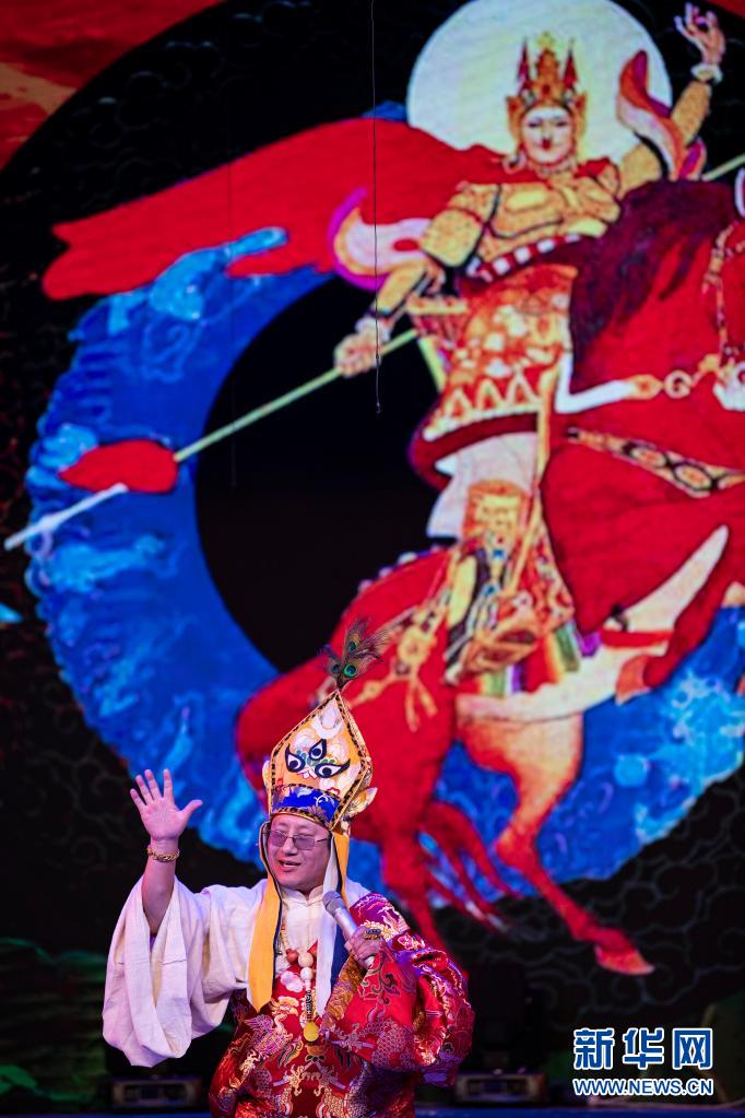 6月12日,在西藏拉薩市的自治區(qū)群藝館,格薩爾西藏自治區(qū)級代表性非遺傳承人扎西多吉表演說唱《卓姆妙音》。新華社記者 孫瑞博 攝