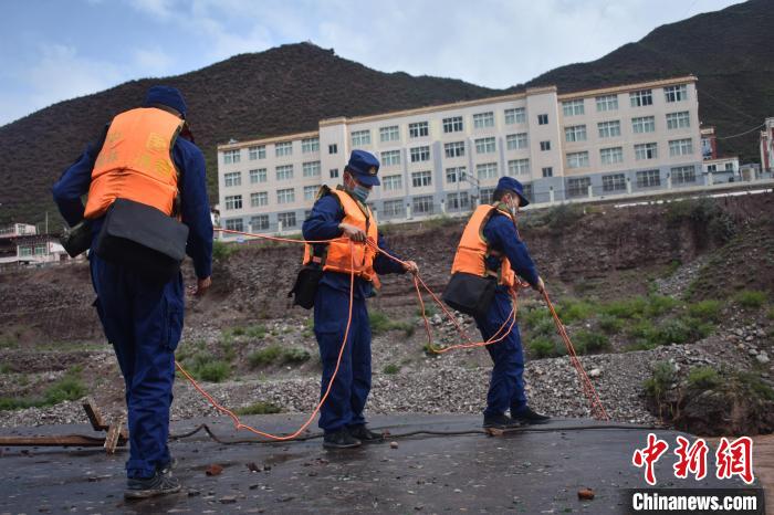消防指戰(zhàn)員測量水位。 卡若區(qū)森林消防中隊供圖