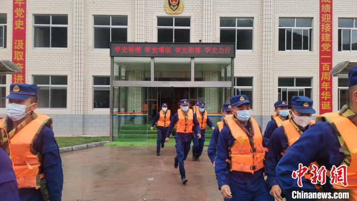 隨著急促的哨聲,中隊指戰(zhàn)員們迅速集合到位,值班員迅速給各戰(zhàn)斗小組分配任務(wù)后,緊急準(zhǔn)備了前期救災(zāi)的各項物資裝備,從接警到物資準(zhǔn)備、登車、駛出營區(qū)共用了6分26秒。