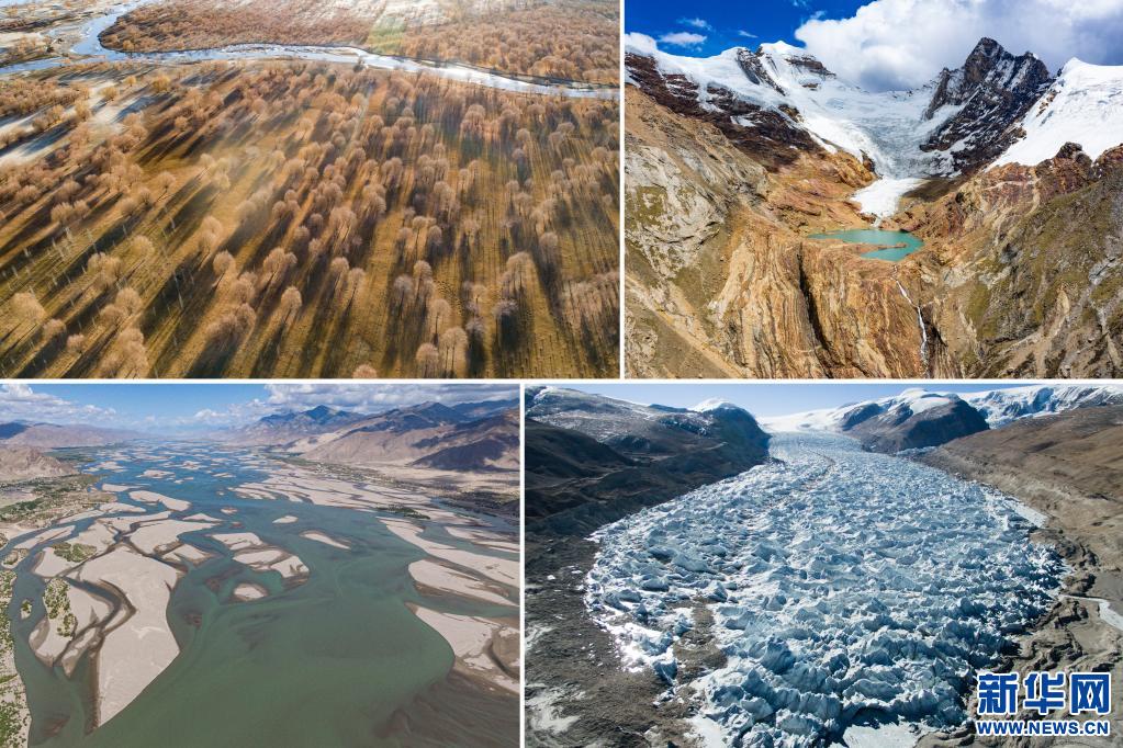 拼版照片:左上:山南市雅江兩岸種植的樹(shù)林。新華社記者 普布扎西 攝