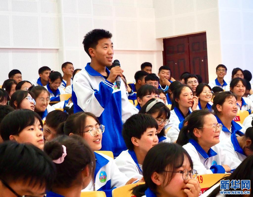 西藏山南市第二高級(jí)中學(xué)的學(xué)生正在和老師互動(dòng)(新華社記者金一清攝)