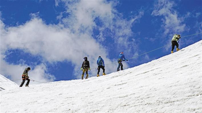 壓題圖片為洛堆峰登山探險(xiǎn)活動(dòng)中,登山愛好者在5400米雪線處進(jìn)行冰雪和登山技術(shù)訓(xùn)練。記者 鄭璐 張姝 攝