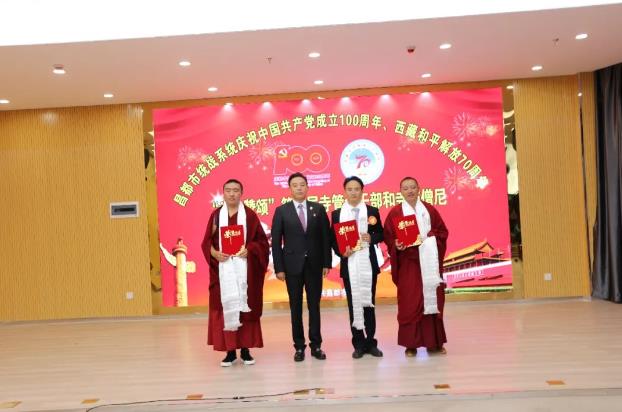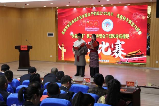 7月2日,昌都市委統(tǒng)戰(zhàn)部以慶祝中國共產(chǎn)黨成立100周年、西藏和平解放70周年“為黨贊頌”為主題,舉辦全市第二屆寺管會干部和僧尼演講比賽,市委常委、統(tǒng)戰(zhàn)部長,市政協(xié)黨組副書記澤仁俊美出席,市委宗教工作領(lǐng)導小組成員單位負責人和強巴林寺、卡若區(qū)寺管會干部代表、僧尼代表觀看了比賽。市委組織部、市委宣傳部、市委統(tǒng)戰(zhàn)部、市民委、市文化局、市宗教局等單位負責人擔任評委。