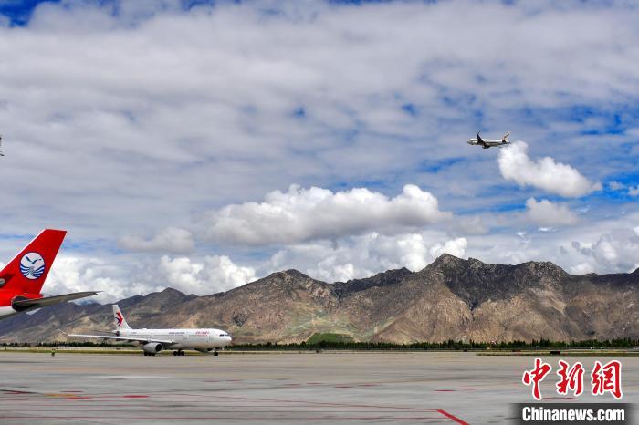 圖為拉薩貢嘎國際機(jī)場航班起降?!≈芎?攝
