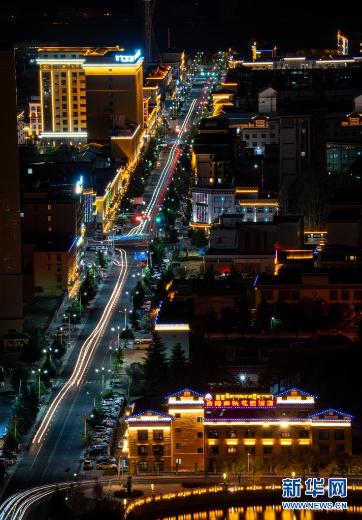 這是林芝市巴宜區(qū)八一鎮(zhèn)夜景(4月3日攝,無人機(jī)照片)。新華社記者 孫非 攝
