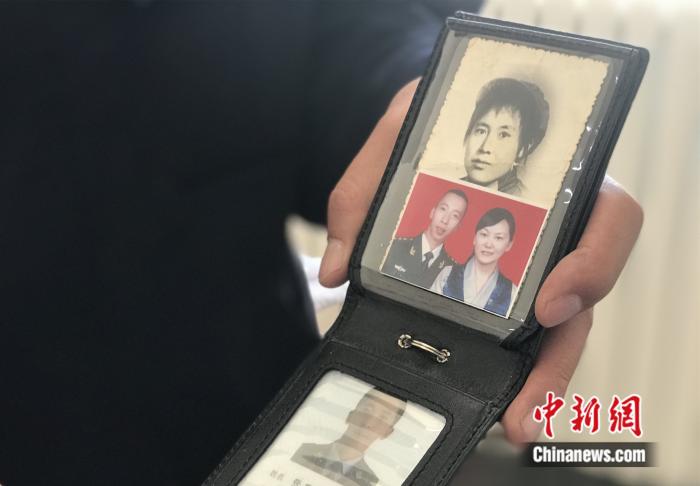 圖為張思祖隨身攜帶的證件夾中,一直放著母親年輕時的軍裝照。冉文娟