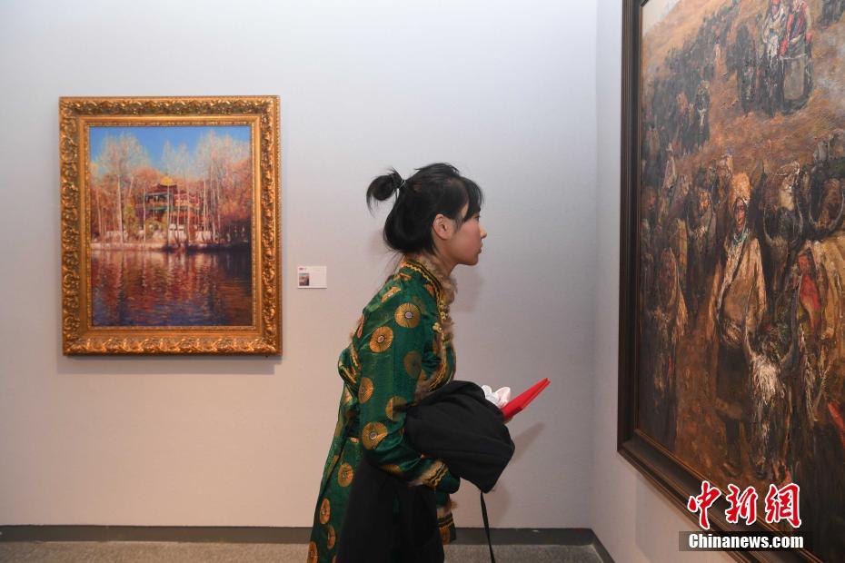 9月26日,“第四屆雪域情西藏油畫展”在西藏自治區(qū)自然科學(xué)博物館舉辦。此次油畫展共展出入選作品80余幅,展期為10天。圖為參觀者在觀看作品。 中新社記者 貢嘎來松 攝