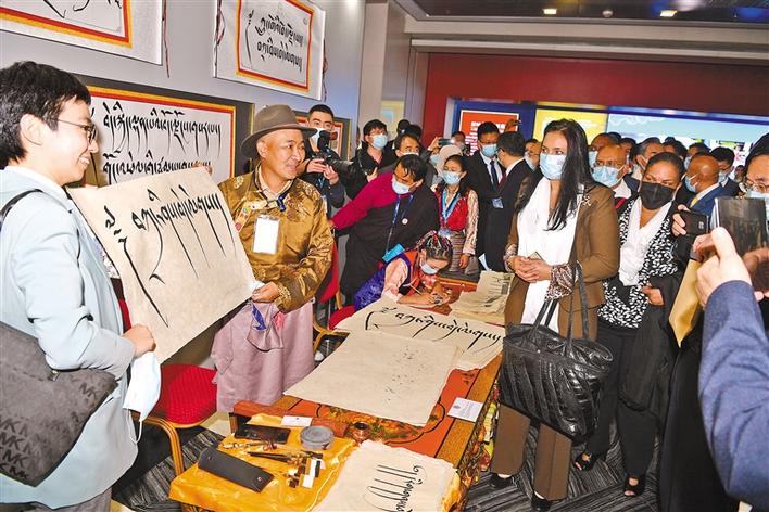 《70年,西藏歷史性巨變》的圖片墻前,嘉賓們紛紛駐足停留,來自國內(nèi)外的嘉賓深切感受,中國共產(chǎn)黨領(lǐng)導(dǎo)西藏人民,創(chuàng)造了短短幾十年跨越上千年的人間奇跡;深切感受特別是黨的十八大以來,以習(xí)近平同志為核心的黨中央把西藏工作在黨和國家工作全局中的重要戰(zhàn)略地位提升到了前所未有的高度,指引西藏解決了許多長(zhǎng)期想解決而沒有解決的難題、辦成了許多過去想辦而沒有辦成的大事,推動(dòng)西藏各項(xiàng)事業(yè)取得全方位進(jìn)步、歷史性成就。