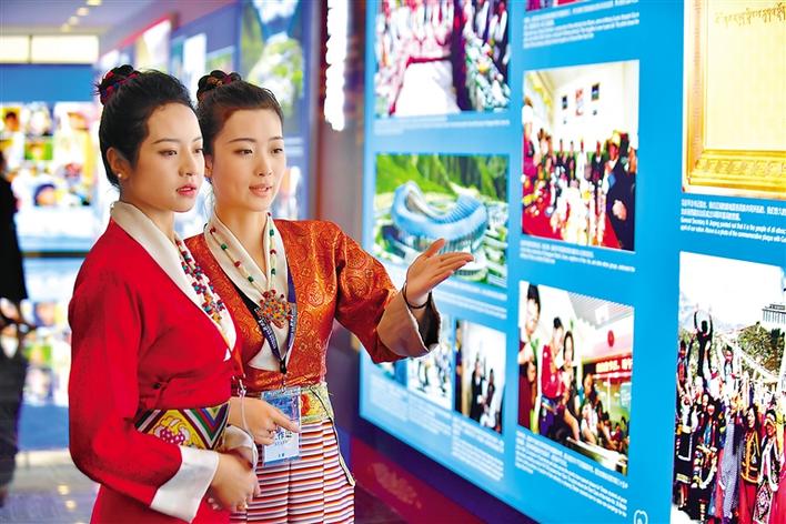 一幅幅精美絕倫的照片、一幀幀生動(dòng)直觀的視頻畫面、一個(gè)個(gè)獨(dú)特壯觀的實(shí)物模型、一次次活潑有趣的互動(dòng)展示,全面、立體、生動(dòng)地向中外嘉賓展示了西藏和平解放70年來經(jīng)濟(jì)社會(huì)發(fā)展的歷史性成就,展示了中國共產(chǎn)黨團(tuán)結(jié)帶領(lǐng)西藏各族人民創(chuàng)造了彪炳千秋、利澤萬代、亙古未有的歷史功績(jī)。