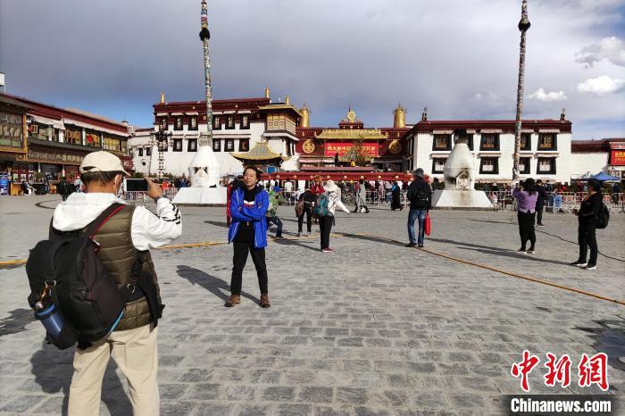 圖為大昭寺廣場,游客拍照留念?!〗w波 攝