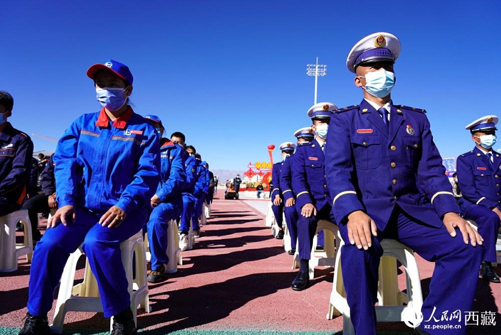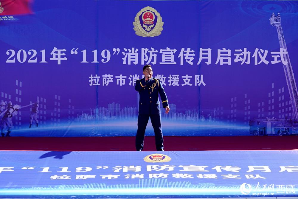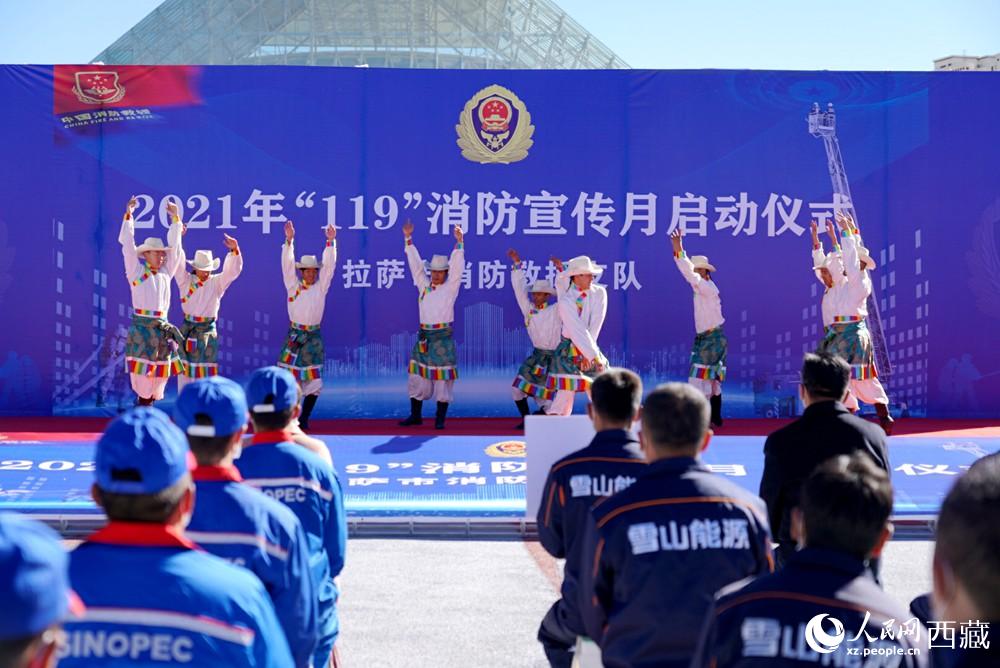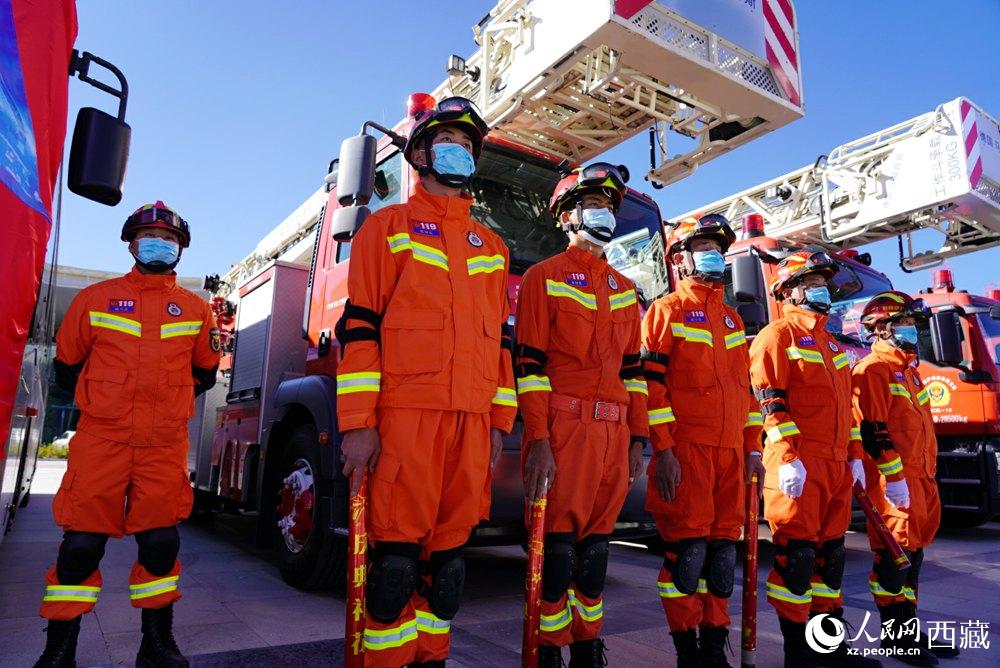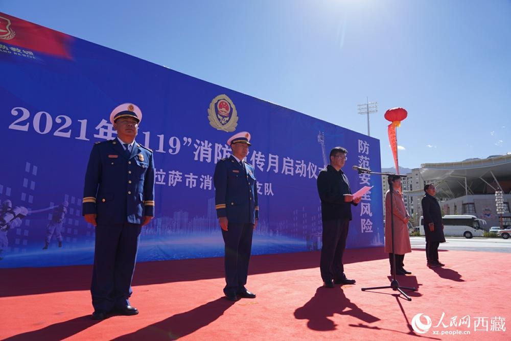 拉薩市2021年“119”消防宣傳月啟動儀式現(xiàn)場。人民網 次仁羅布