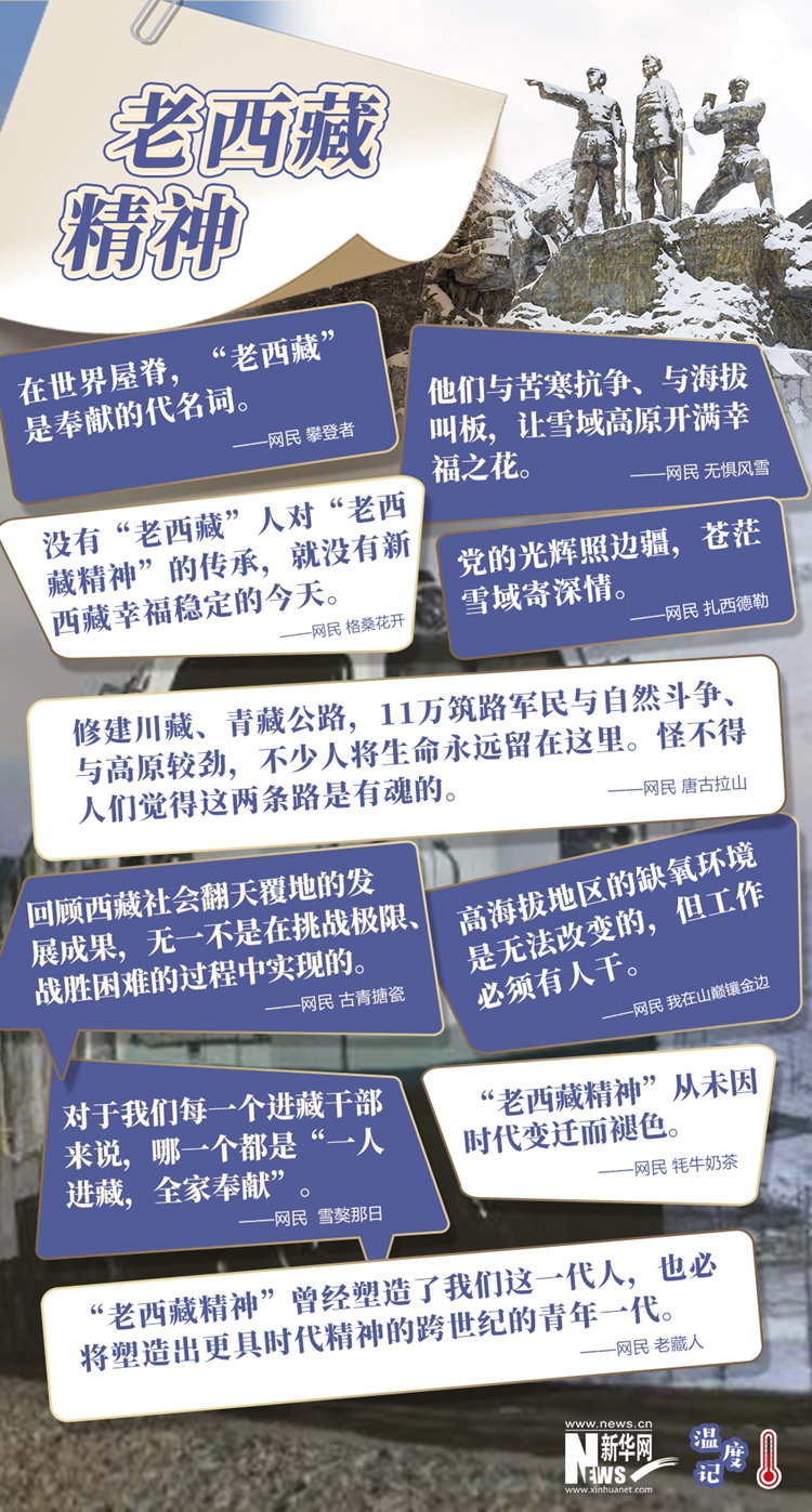 此后的幾十年間,一批又一批、一代又一代援藏干部、駐藏官兵踏上世界屋脊,扎根雪域高原,和當?shù)厝罕娨坏?,推動西藏各項事業(yè)又快又好發(fā)展,讓千年雪域高原變了樣,也賦予“老西藏精神”更為豐富的時代內涵。“生命在這里很脆弱,生命在這里也很頑強?!本W民們在社交平臺上表達對雪域高原心向往之的同時,更不忘歌頌歷久彌新的“老西藏精神”。歷經時代的變遷,這種精神正在感召并鼓舞更多人,扎根邊疆,造福西藏,讓那里的山水永遠碧藍、綺麗,讓那里的土地永遠充滿希望、幸?;ㄩ_。(文字:徐可 海報設計:王曄)