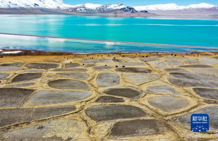 西藏自治區(qū)那曲市尼瑪縣當穹錯湖畔的農(nóng)田(2020年4月30日無人機拍攝)。新華社記者 田金文 攝