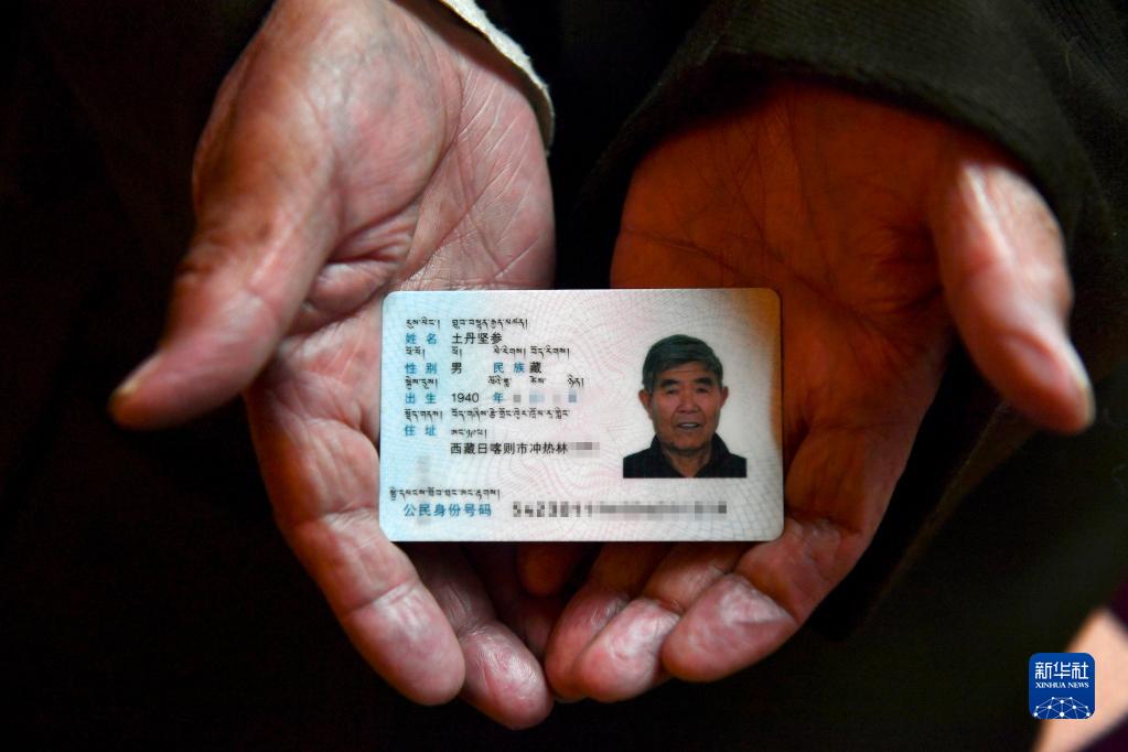 土丹堅參老人的身份證(5月11日攝)。新華社記者 孫瑞博 攝
