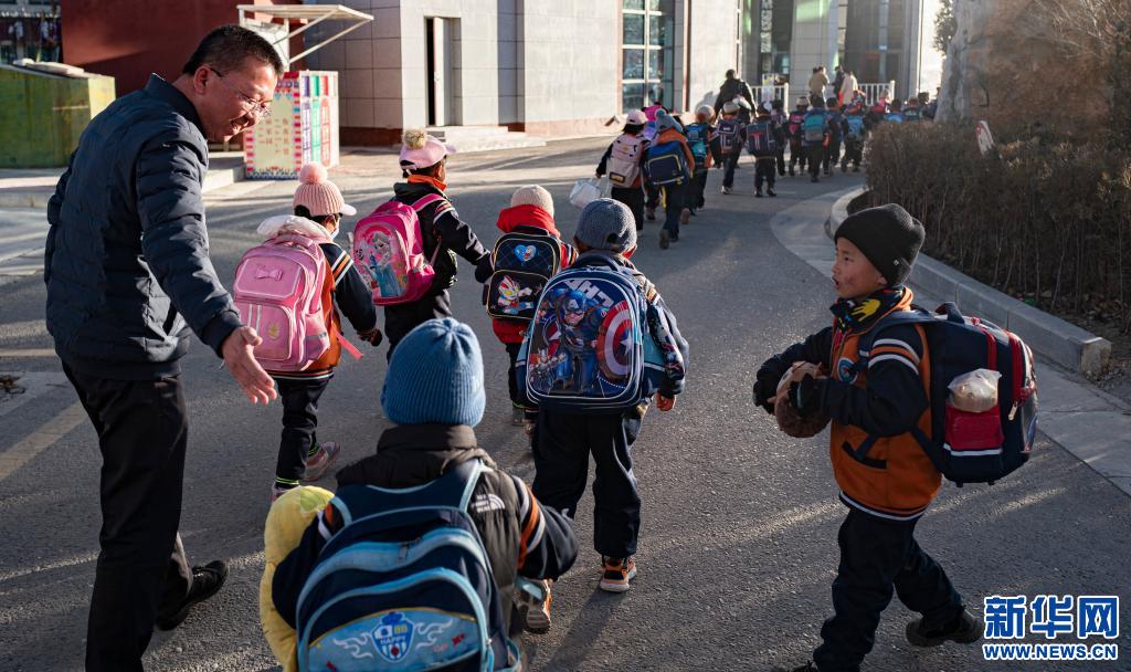 援藏教師潘杰送學(xué)生放學(xué)(12月9日攝)。
